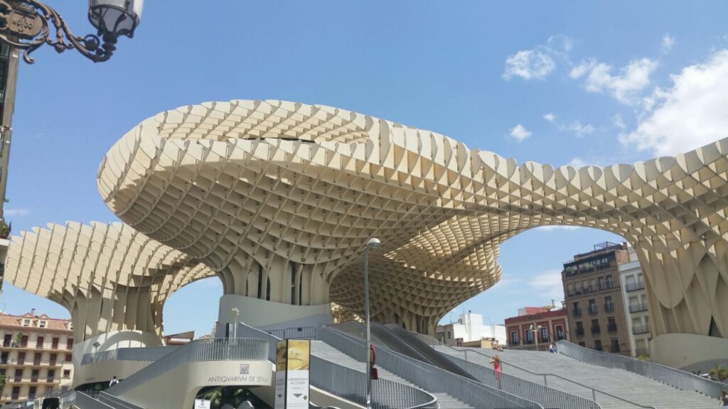 Here we find the Metropol Parasol, inaugurated in March 2011, designed by the German architect Jürgen Mayer, which consists of a structure of six umbrellas shaped like large mushrooms. Due to this mushroom-shaped structure, it is commonly known as Las Setas, and its design is inspired by the vaults of the Cathedral of Seville and the ficus trees in the nearby Plaza del Cristo de Burgos. The Metropol Parasol complex, due to its avant-garde design and tourist functions, has become another attraction in the historical center of Seville, even featuring in reports from prestigious international newspapers such as the New York Times or the Washington Post.